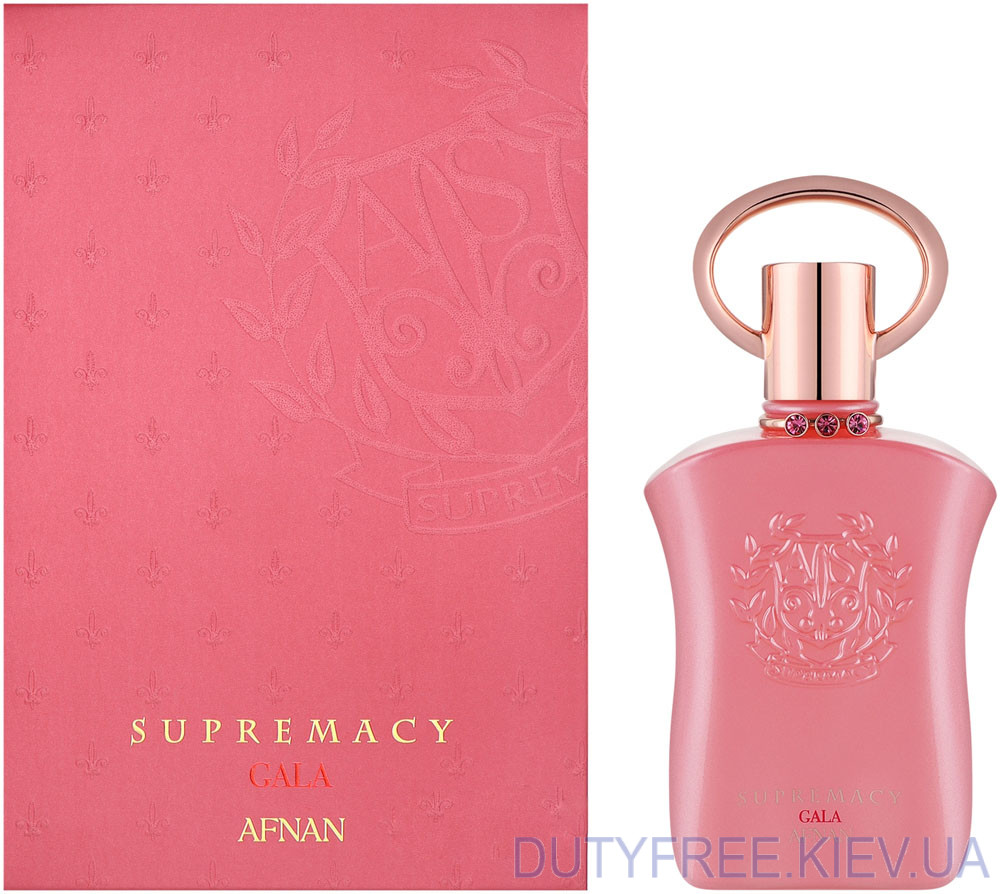 Знайомтесь з Afnan Perfumes Supremacy Gala Femme — парфумом, який втілює жіночність і витонченість. Початкові ноти апельсина, квітки груші та червоних ягід дарують вибух свіжості й соковитості. Аромат вийшов досить давно, але і зараз є популярним. У серці аромату розквітають гарденія, біла жимолість і червоний жасмин, створюючи чарівний квітковий букет.