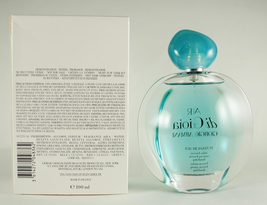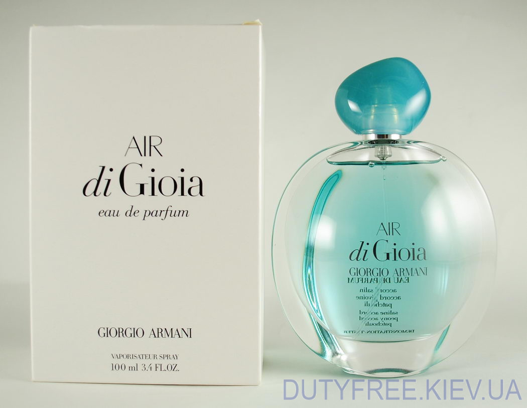 З легким бризом і прогулянкою берегом моря асоціюється аромат Armani Air di Gioia, створений для прекрасної половини людства. Верхні ноти унікального амбре солі, соковитого мандарина і солодко гіркого неролі огортають прохолодою і ніжністю композиції. Ноти серця вишуканої півонії, шикарного іланг-ілангу та трепетного апельсинового цвіту чарують вишуканістю.