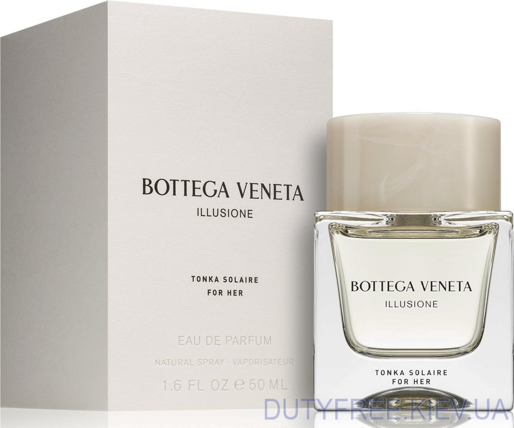 Ніжний, свіжий та жіночний аромат Bottega Veneta Illusione Tonka Solaire, передає природне багатство квітів та фруктів. Робота вперше була представлена у 2021 році та на цей час є уособленням багатьох жінок у світі. Перший подих принесе з собою відлуння лимона та більш солодких апельсинових квіток, поєднаних у єдиний вузол.