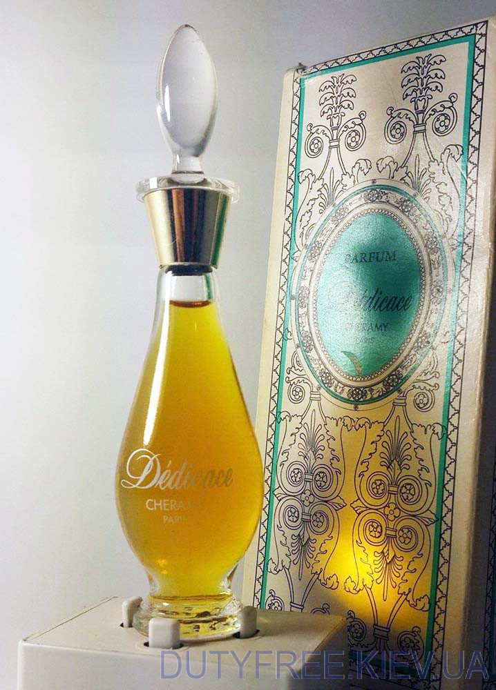 Це не Франція, а США. Парфуми під назвою Dedicace створено в 1966 році. Бренд Cheramy виник у США під стратегічним керівництвом власників Houbigant. Але парфуми, інші косметичні предмети та упаковка