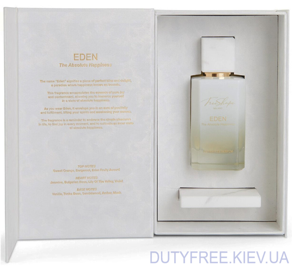 Особливий та дуже складний парфум FreeShape Milano Eden відкривається сплеском соковитих цитрусових — апельсин і бергамот переплітаються з екзотичними тропічними фруктами, що надають аромату яскравої енергії. Червоні ягоди привносять солодкість, створюючи привабливу початкову композицію. У серці звучить м’який жасмин, ніжна конвалія та розкішна троянда, які утворюють витончену квіткову гармонію.