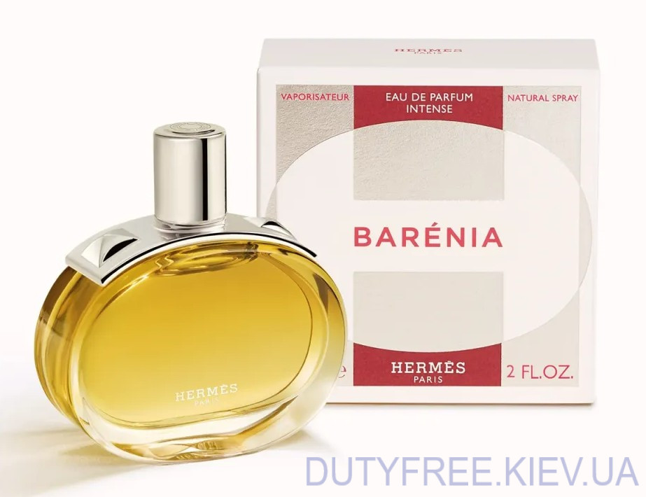 Парфум Hermès Barénia Eau de Parfum Intense — це інтенсивна версія культового жіночого аромату з родини шипрових, випущена влітку 2025 року під керівництвом парфюмера Крістін Nagel. Натхненний м'яким, преміальним шкіряним матеріалом Barénia, який використовується в аксесуарах Hermès, цей парфум — більш опulentна та стверджувальна інтерпретація оригіналу 2024 року: домінуюча шкіряна нота переплітається з глибиною пачулі та мускусу, створюючи ауру розкоші, сили та чуттєвості.