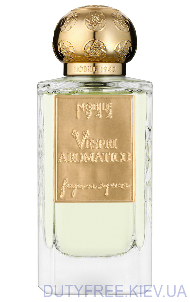 Аромат для гурманів Nobile 1942 Vespri Aromatico відображає свіжість узбережжя з яскравими цитрусовими відтінками та природними тонами трав. Композиція починається з нот лимона, бергамота та трави, що поєднуються з сіллю та легким відтінком укропу, створюючи відчуття прохолодного бризу на березі моря. У серці розкриваються нотки ялівцю, фенхелю, розмарину та герані, які додають пряного характеру з легким, запашним відтінком, що підкреслює витонченість.