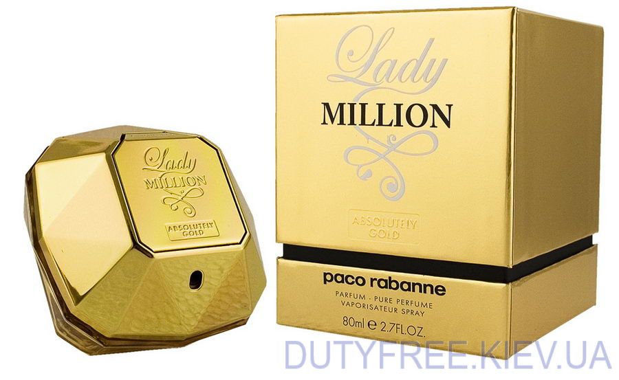Эффектная композиция 2012 года Paco Rabanne Lady Million Absolutely Gold, по мнению пользователей, является одним из самых успешных продолжений знаменитого и очень популярного женского аромата Paco Rabanne Lady Million. Одновременно женственная и скромная композиция буквально утопает в цветах и ягодах. Так, начальная нота посвящена, свежей весенней малине. Далее, перед нами раскрывается гармония терпкого апельсинового цвета и сахарного красавца жасмина. Дуэт мягкости и умилительной простоты продолжается в хвосте произведения, где свою прелесть показывает нероли и стильного кашмерана. В пирамиде нет ничего лишнего, только бесконечная женственность и конечно, талант парфюмеров.