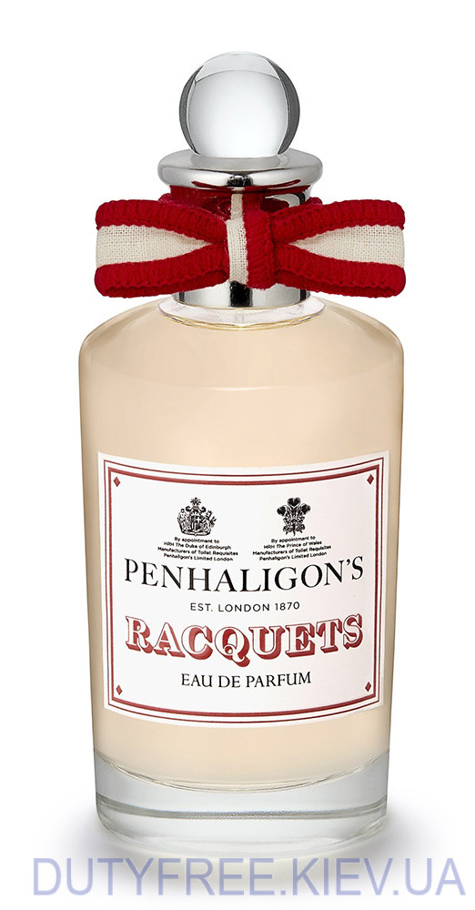 Відносно нова парфумерна робота 2021 року Penhaligon's Racquets, це присвята традиційному англійському спорту - тенісу. Аромат багатий на зелені відголоси та цікаві елементи. Старт, це легкий бриз стиглого лимона, де відчувається його гіркота та легка кислинка. Традиційно до серії флакон створено у формі класичного графина з кришкою, цього разу з біло - червоною стрічкою.
