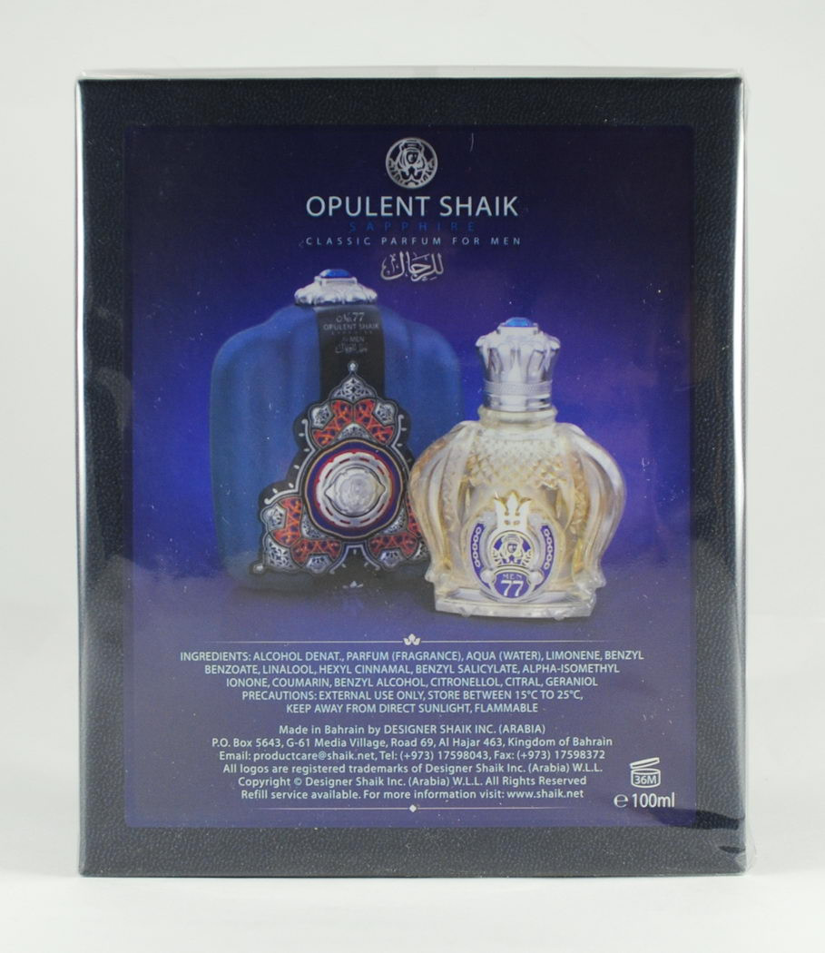 Дорогой и притягательный эликсир для высшего света Shaik Opulent Classic No 77, выходит ограниченным тиражом и не имеет аналогов в мире ароматов, он приходит на помощь, когда необходим парфюм для избалованного человека. Начальная нота раскрывается переливами терпкого зеленого бергамота, лежащего на подушке из экзотического кардамона и листьев тропического растения нероли. Особого внимания заслуживает флакон, созданный вручную, красивая огранка стекла и украшения делают его произведением искусства.