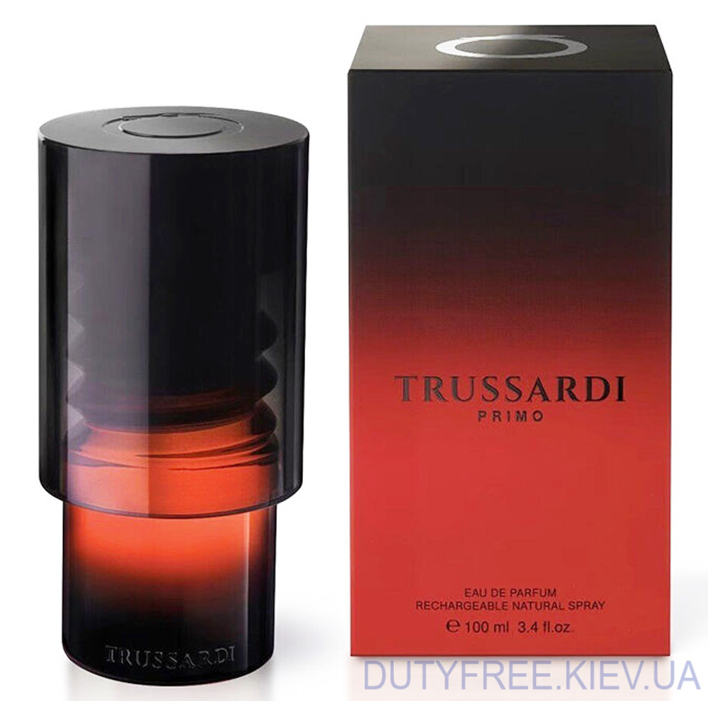 Теплий вітер спогадів приносить із собою аромат Trussardi Primo, парфум, що поєднує яскраві грані природи й сміливі відтінки сучасності. Початкові ноти амбри, мінеральних акордів, кленового сиропу і грейпфрута створюють атмосферу, де солодкість і свіжість переплітаються в ідеальній гармонії. Дизайнери зробили флакон в чорних та червоних кольорах, які чудово поєднуються.